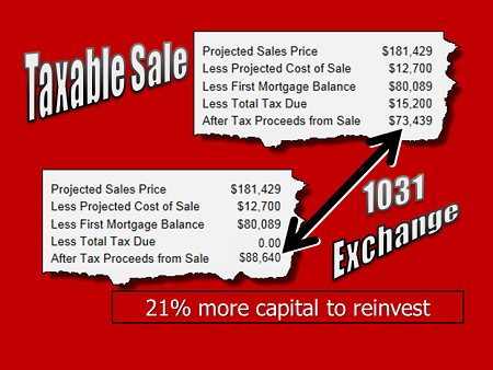 Your taxes may have been filed, but here's an opportunity for Real Estate Investors, to grow their proceeds through the Section 1031 exchange. Section 1031 exchange for rental and investment real estate, is a tool that allows investors to move the gain from one property to another without immediate income tax consequences. An instant benefit is to postpone the tax due which gives the investor a larger amount of proceeds to invest.