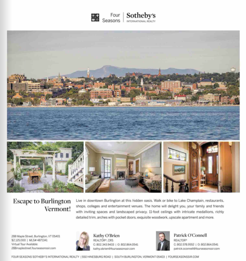 With Four Seasons Sotheby's International Realty, you have the capacity to reach audiences across the country and even the globe to market your unique property. Below you will see an ad we posted recently for our listing in Burlington that featured in a New York Times flipbook. We have all sorts of creative and fun ways of advertising your real estate!